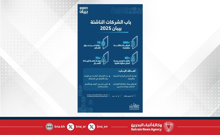 الرياض في 04 أكتوبر/ بنا / ضمن فعاليات ملتقى "بيبان 2025"، الذي تنظمه الهيئة العامة للمنشآت الصغيرة والمتوسطة "منشآت" خلال الفترة من 5 إلى 8 نوفمبر المقبل ،تشارك أكثر من "900" شركة ناشئة من مختلف دول العالم في "باب الشركات الناشئة" وذلك في مركز واجهة الرياض للمعارض والمؤتمرات بالمملكة العربية السعودية، تحت شعار "وجهة عالمية للفرص".