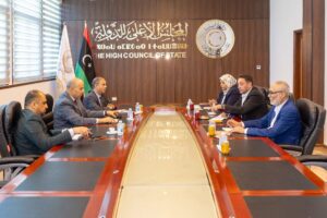 ليبيا – عُقد اجتماع بين ممثلين عن المجلس الأعلى للدولة ومجلس النواب، بحضور الدكتور عبدالله جوان، والدكتور العجيلي أبوسديل، وكلٍّ من منى كوكله، وعثمان عابد مذكور عن المجلس الأعلى للدولة، وعدنان الشعاب، والمهدي الأعور عن مجلس النواب.